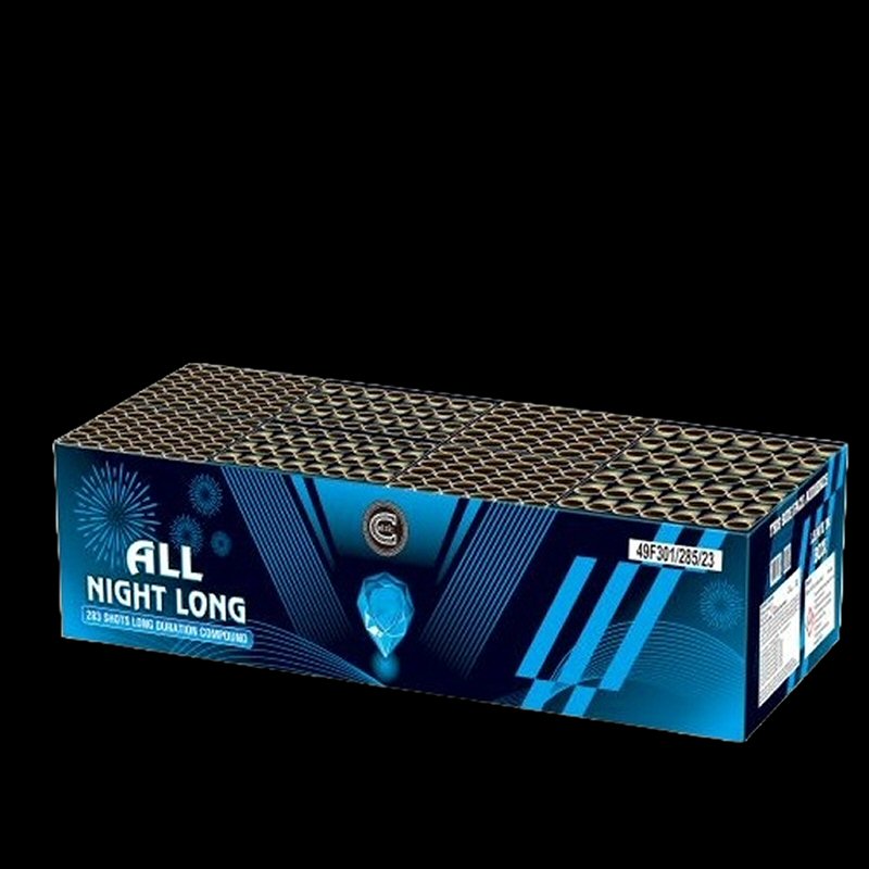 A Whopping 4 minute duration, 283 shot compound with multiple patterns and everything in it. Waves, plum bursts, coloured strobes, silver movers, crowns, dragons eggs and plenty of gold.
